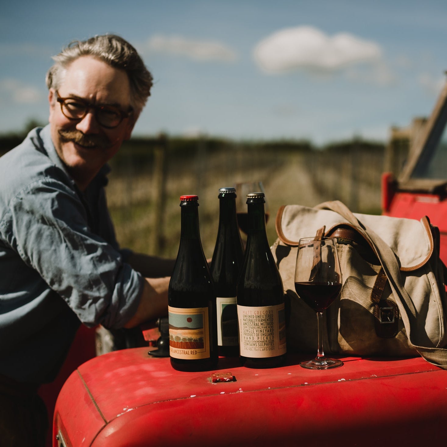 Matt makes English wines based on Pinot Noir, Pinot Gris and Bacchus that he grows in the Leicestershire Wolds.